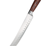 At the heart of this exceptional knife lies a 10-inch blade forged from premium-grade German stainless steel. Renowned for its superior hardness, corrosion resistance, and edge retention, this high-carbon steel ensures that your blade remains sharp through countless uses. The blade’s substantial length and carefully honed edge provide the leverage and cutting power necessary for breaking down large primals, trimming fat, and disjointing poultry.