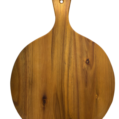 This 21.5″ x 16.5″ round pizza peel cutting board is crafted from the finest acacia wood, making it the perfect tool for slicing and serving your favorite pizza creations.